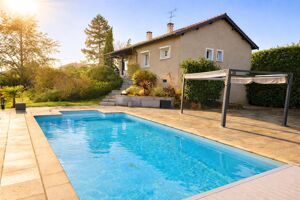 Réf : 06-5179- Nichée dans un environnement résidentiel recherché, au calme absolu et entourée de verdure, à seulement 12 min de Lyon, cette belle propriété de 115 m² habitables vous séduira par son élégance, sa luminosité et son cadre privilégié. Elle est implantée sur une parcelle de 2558 m², avec une magnifique vue dégagée. Dès l'entrée, vous serez charmé par une spacieuse pièce de vie d'environ 42 m², baignée de lumière, comprenant cuisine, salon et salle à manger, et s'ouvrant naturellement sur une grande terrasse bénéficiant d'un vue dégagée sur l'environnement verdoyant. L'espace nuit se compose d'une belle suite parentale avec douche à l'Italienne offrant confort et intimité, ainsi qu'une seconde chambre, avec la possibilité d'en créer facilement une troisième en fonction de vos besoins. Une salle d'eau vient compléter cet espace. Un bureau, idéal pour le télétravail apporte une fonctionnalité supplémentaire très appréciable. Un sous-sol complet de 100 m² pouvant accueillir 2 véhicules, un atelier, un coin outillage, un espace buanderie, une salle d'eau, une pièce de 8 m², une cave. Les extérieurs, soigneusement aménagés, invitent à la détente avec une piscine de 9m * 4m, un terrain de pétanque, un jardin arboré, une grande terrasse pour recevoir en toute convivialité. Cette propriété est un véritable havre de paix, un environnement privilégié, idéal pour une résidence principale comme secondaire. Chauffage par climatisation réversible et cheminée. Menuiseries double vitrage avec volets roulants électriques Classe énergétique D Pour tout complément d'information et pour organiser une visite privée merci de contacter 06 73 63 16 38.