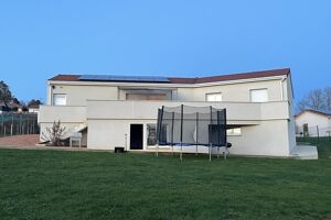 Réf : 05-5181. À 1h au nord-ouest de Lyon, 10 min de la gare SNCF d' Amplepuis, 20 min de Roanne. À REGNY (42). Villa de 2022 sous garantie décennale, élevée sur vide sanitaire. Chauffage au sol par pompe à chaleur, panneaux photovoltaïques avec revente à EDF. Villa avec accès de plain-pied comprenant cuisine ouverte sur vaste pièce de vie avec salon, séjour ouvrant sur terrasse, orientée sud-ouest, un couloir qui dessert 4 chambres dont une avec accès terrasse, une salle de bain avec douche et baignoire, un wc, un garage, une buanderie. Le tout sur un terrain de 1390 m² entièrement clôturé. Plus de renseignements 06 74 58 29 09. Classe énergie. A.