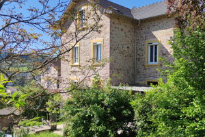 Réf : 05-5193. À 1h10 au nord-ouest de Lyon, 18mn de la gare SNCF d’ Amplepuis., à Cours la ville (69), très belle maison bourgeoise en pierre du XXe siècle, à 2 pas des commerces et à côté du collège. Maison se comprenant : entrée qui dessert, cuisine, double séjour toilette. À l’Étage, 3 chambres dont une suite parentale avec salle de bains-wc et une salle d'eau. Au-dessus des combles aménagés de 2 chambres, salle d'eau-wc et un bureau ou salle de jeux. Cette maison de caractère est élevée sur deux caves et une chaufferie. Terrain attenant de 783 m² avec une place de parking, une dépendance aménagée en studio, avec cuisine et salon et un abri de jardin attenant. Plus de renseignements 06 74 58 29 09.