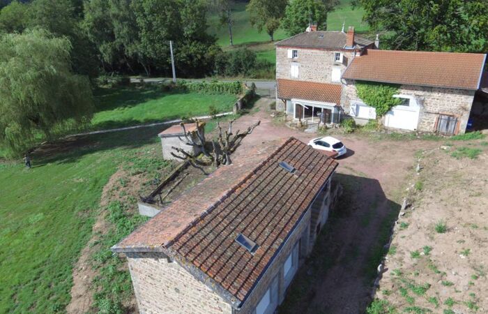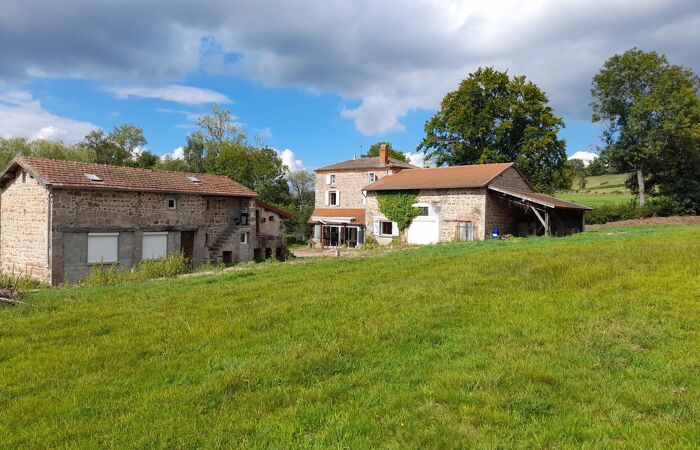 Réf 03-4966 EXCLUSIVITE. RARE à 35mn au Nord de Roanne, entre ROANNE et LAPALISSE (03), à 1h45 de LYON, dans un écrin de verdure, propriété composée d'une maison d'habitation en pierre et de ses dépendances : étable, garage, appentis, remise, atelier, petites annexes, étang et pré attenants d'une superficie totale de 37 820m2. La maison d'habitation (109 m2 environ) se compose d'un salon sur tomettes avec ancienne cheminée (non fonctionnelle) et plafond à la française, séjour, cuisine, chambre, salle de bain et wc séparé. A l'étage : un escalier en pierre distribue 2 chambres. Grenier. Chaufferie : chauffage central fuel (chaudière 1988). Volets roulants électriques. Véranda de 30 m2. Dépendance attenante faisant office de garage (porte automatique), étable et plateau au 2ème niveau, abri bois (cuve à fuel). Autres dépendances en pierre formant 2 niveaux à aménager (40m2 au sol). Un étang de 9 000 m2 environ alimenté par une rivière et un terrain libre de 22 645 m2. Assainissement individuel conforme. Conviendrait pour chambres d'hôtes ou gîtes. Logement à consommation énergétique excessive: Classe : G. Plus d'informations au 06-85-29-73-39