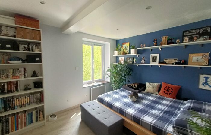 A ce bien s'ajoute une dépendance de 30m2 totalement aménagée, avec cuisine-séjour, salle d'eau-wc et une chambre. Grand garage indépendant. Cave. Terrain clos de 2355m2. Chauffage électrique et poêle à granulés, double vitrage. A proximité, à pied, de tous les commerces. A voir !!! Plus d'informations contact 06 28 95 83 48. Réf : 07-5060.