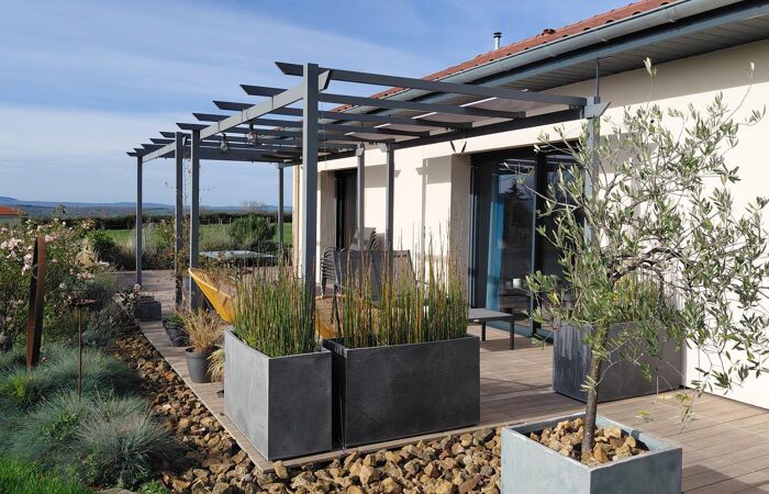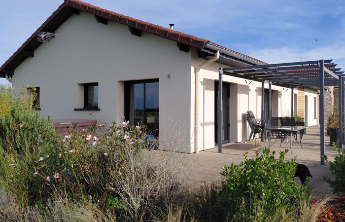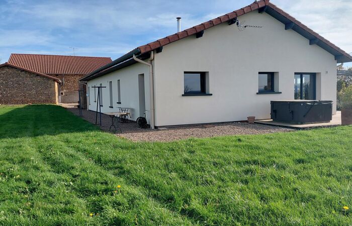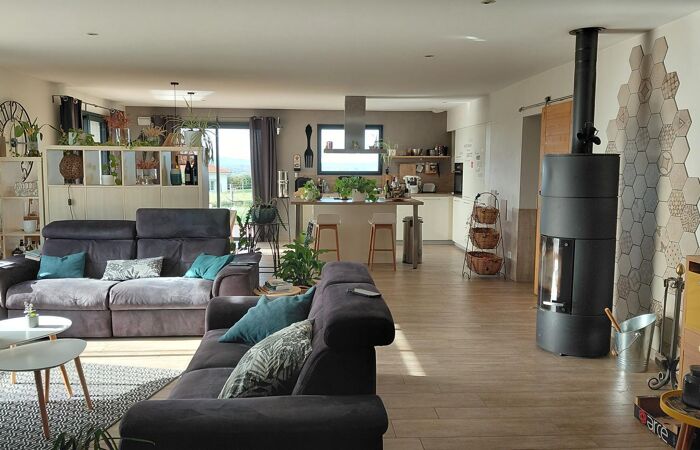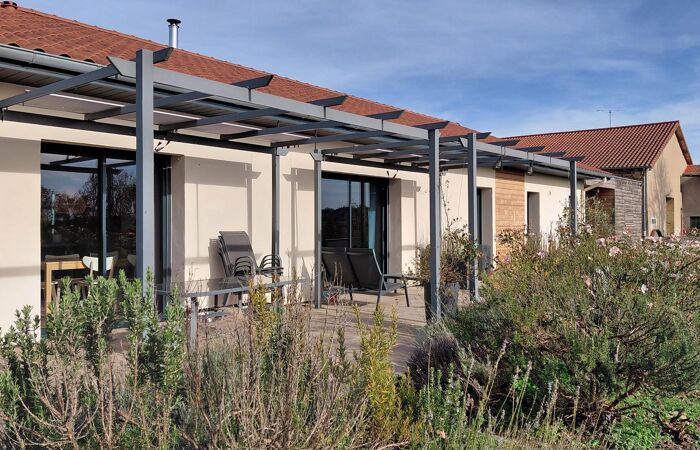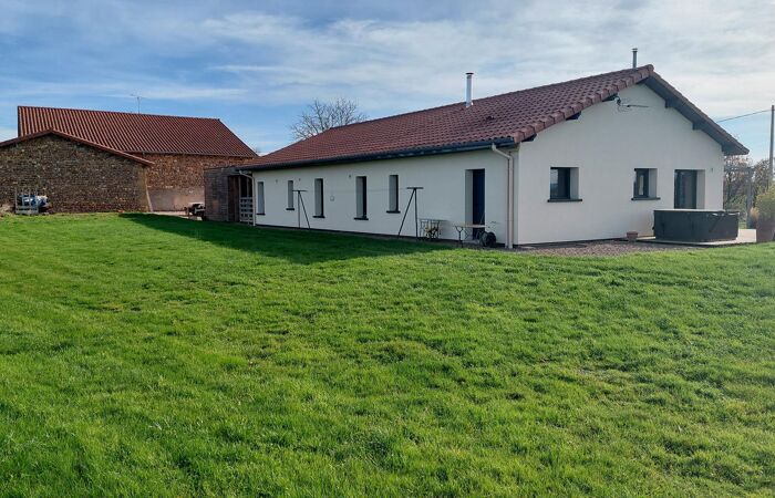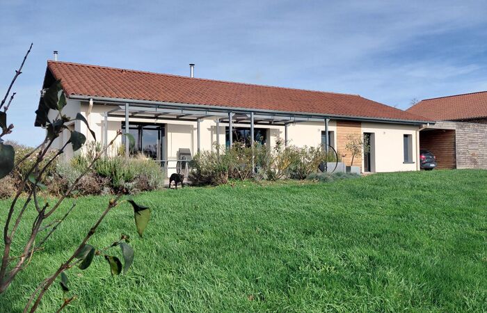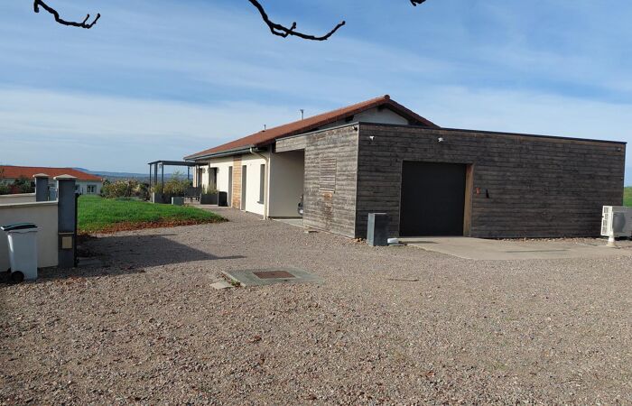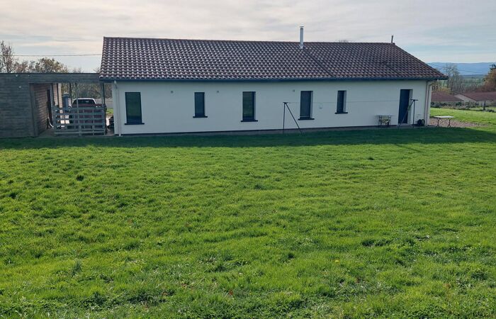 Réf : 03-5152. Superbe vue. Entre Charlieu et Marcigny, à 10 minutes de Charlieu, 15 minutes de Marcigny, 30 minutes de Roanne, ensemble immobilier composé d'une maison de plain-pied (157 m2) construite en 2012 (conception bioclimatique) comprenant : hall d'entrée avec placards, vaste pièce à vivre (45m2 environ) formant cuisine équipée-séjour-salon, poêle à bois, grandes baies vitrées ouvrant sur la terrasse de 70 m2, Un premier espace distribue une suite parentale (douche à l'italienne-meuble vasques-wc et dressing) et buanderie. Un deuxième espace ouvre sur 3 chambres, salle d'eau et wc indépendant. Une 2ème entrée donne accès au garage et au carport. Chauffage par pompe à chaleur par le sol. Double vitrage sur menuiseries aluminium et stores persiennes électriques. Une deuxième maison à restaurer entièrement se compose de 5 pièces pour une surface totale de 100m2 environ. Grandes dépendances attenantes de 350 m2 environ (toiture récente) à usage de stockage et de garage avec une belle hauteur sous plafond. Puits. Terrain libre attenant de 45 420m2. (4,5 hectares). Classe énergie C. Plus d'informations au 06-85-29-73-39.