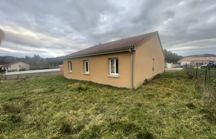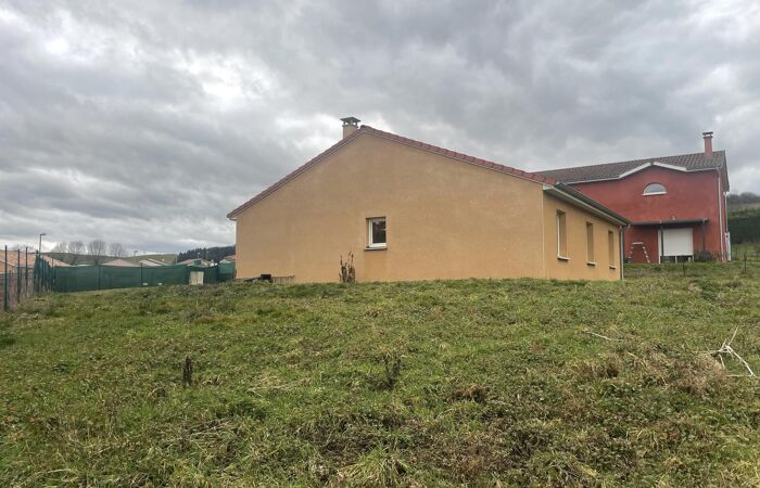 Réf : 05-5185. À 50mn au nord ouest de Lyon, à Amplepuis, à 5 min de la gare SNCF d’ Amplepuis et du centre ville, villa de plain-pied de 2007. Elle comprend une cuisine ouverte sur salon et séjour donnant sur jardin, (possibilité d’installer un poêle à bois), un couloir avec rangement dessert 3 chambres avec placards, une salle d’eau et un wc. Garage. Le tout sur un terrain de 702 m². Classe énergie : D. Plus de renseignements au 06 74 58 29 09.