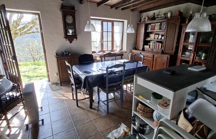 Elle se compose d'une cuisine ouverte sur salon, d'une salle à manger avec un accès direct à la terrasse, de deux chambres dont une avec salle de bain, une buanderie ainsi que des combles. Côté équipements : Chauffage :Poêle à bois + radiateurs électriques. Assainissement individuel non conforme. Classe énergétique: G. Une belle opportunité pour un projet de résidence principale ou secondaire. Pour plus de renseignements Sandrine 06/73/63/16/38