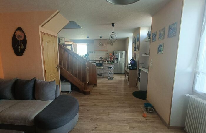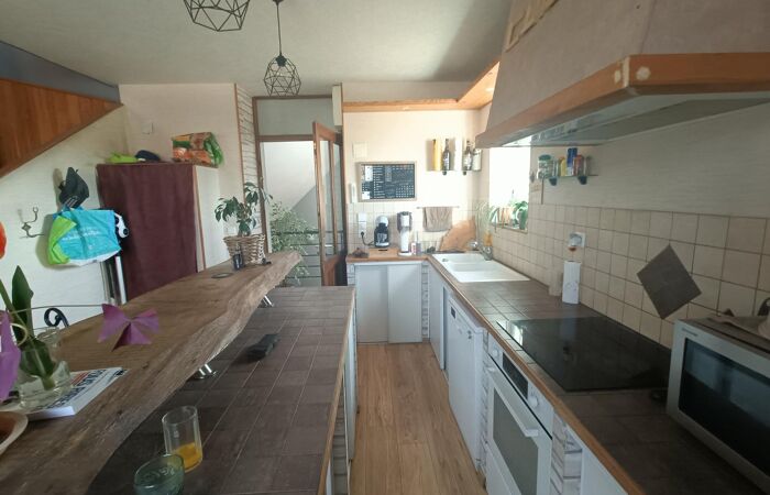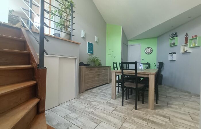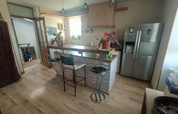 Réf 04-5233 : A Chauffailles, une maison en pierres apparentes, prête à habiter, comprenant au premier niveau : grande pièce de vie avec cuisine équipée et ilôt/bar, wc. Au 2ème niveau : 2 chambres avec salle de bains et wc. Dans les combles : deux grandes chambres et dressing. Au RDC une salle à manger, une salle d'eau, avec wc. Au sous-sol : une grande Chaufferie/buanderie, cave, rangements. Le jardin est plat, avec une grande piscine hors sol de 7mx3 m (32 m3), bassin d'agrément, dépendance en bois 18 m², abri deux voitures, cabane de jardin en tôle, garage fermé pour 2 voitures avec toiture neuve. Chauffage central au fioul chaudière Viessmann, toiture récente, tout à l'égout. Double vitrage en PVC blanc et volets roulants solaires, isolation murs et toiture, triphasé en électricité. Mitoyenneté sur le côté absolument pas gênante, aucun vis à vis avec les voisins. Classe énergie : E. Plus de renseignements contactez Karine BAUDOIN au 06 26 79 83 95