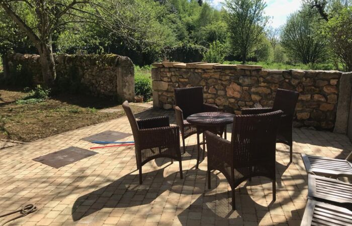 Une bergerie avec un box de 20 m² ,( eau et électricité sur place). Beau terrain arboré de 7710 m² environ , clos de murs, un verger ( divers variétés ) . Cette maison est vendue avec les meubles.
