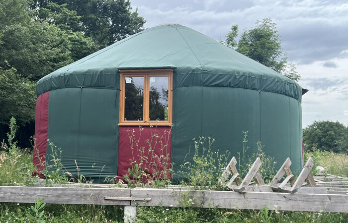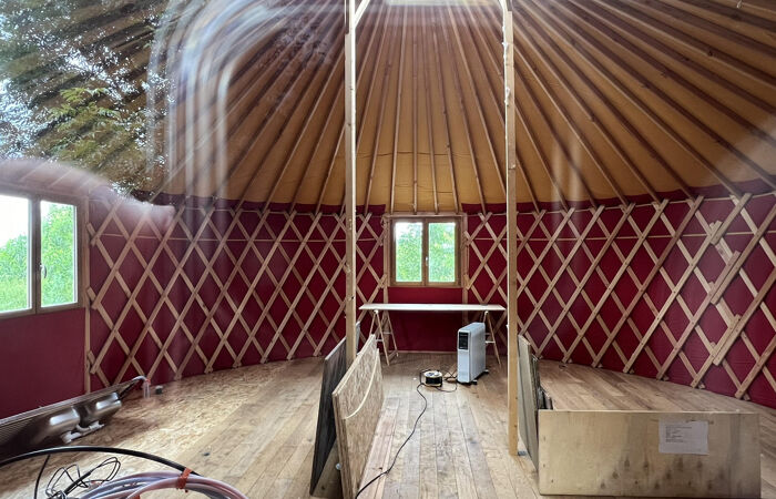 Pour les amis, une yourte de 40 m² , dont une salle d 'eau ( douche à l 'italienne) avec toilette, un espace cuisine à finir d 'aménager, une terrasse en bois de 100 m² environ .