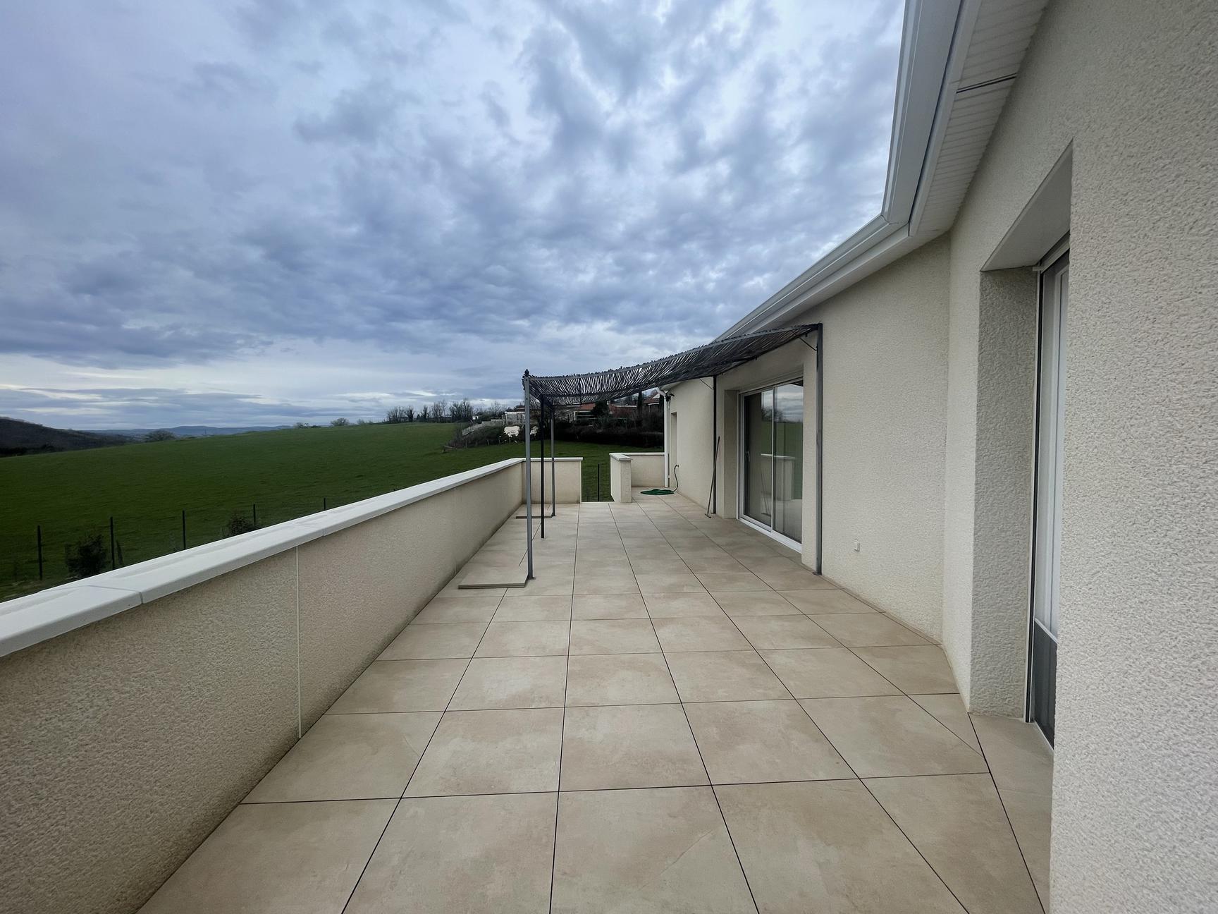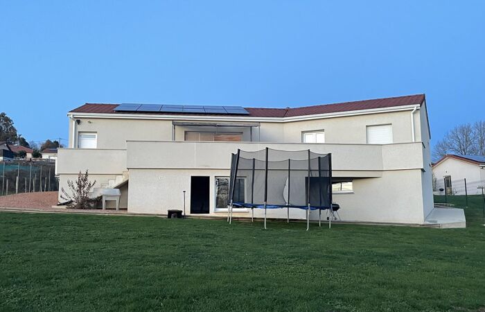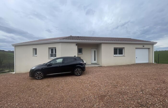 Réf : 05-5181. À 1h au nord-ouest de Lyon, 10 min de la gare SNCF d' Amplepuis, 20 min de Roanne. A REGNY (42). Villa de 2022 sous garantie décennale, élevée sur vide sanitaire. Chauffage au sol par pompe à chaleur, panneaux photovoltaïques avec revente à EDF. Villa avec accès de plain-pied comprenant cuisine ouverte sur vaste pièce de vie avec salon, séjour ouvrant sur terrasse, orientée sud-ouest, un couloir qui dessert 4 chambres dont une avec accès terrasse, une salle de bain avec douche et baignoire, un wc, un garage, une buanderie. Le tout sur un terrain de 1390 m² entièrement clôturé. Plus de renseignements 06 74 58 29 09. Classe énergie. A.