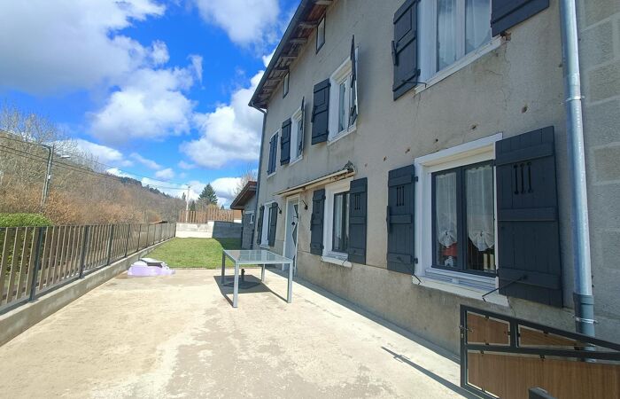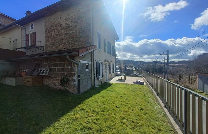 Réf 07-5024. Cublize ! Située à une heure de Lyon, 30mn de Roanne, 10mn de la gare SNCF d'Amplepuis (ligne Roanne-Lyon), à deux minutes à pied du Lac des Sapins et du bourg de Cublize, maison de 160m2 habitable. Cette maison comprend, une pièce de vie avec cuisine équipée, 3 chambres, un coin bureau, une grande pièce de vie de 44m2 (salle de jeux, bureau, chambre .... ), une salle de bain, 2 wc, une dépendance, une belle terrasse exposée sud- ouest et un coin jardin. Chauffage par poêle à granulés (principal) et fioul (en complément). Classe énergie : D. Double vitrage, tout à l'égout. A proximité des commerces, des écoles, ds ramassages scolaires et du site du Lac des Sapins. A voir !
