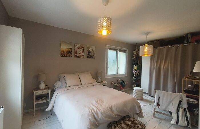 Cette maison comprend de plain-pied : une cuisine ouverte sur le salon-séjour, 3 chambres, une salle-d'eau, wc. Sous-sol complet,. Dépendance et terrain. Chauffage par pompe à chaleur, double vitrage, isolation extérieure, panneaux solaires. Classe énergie : B. Tout à l'égout. A deux pas des commerces, écoles, collèges. A voir ! Plus d'informations contact 06 28 95 83 48.