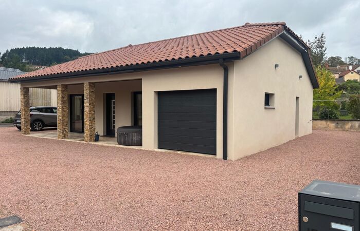 Réf : 04-5173. Très rare à Chauffailles, maison NEUVE de plain-pied en centre ville et au calme. Belle construction de qualité réalisée par des artisans, avec une très faible consommation de chauffage, une climatisation pour l'été, excellente isolation, cuisine équipée haut de gamme avec électroménager, volets roulants électriques, garage, buanderie, grande terrasse abritée et terrain d'agrément. Une pièce de vie de 34 m², 3 chambres, salle d'eau avec douche à l'italienne, wc séparés suspendus, buanderie et accès garage par l'intérieur. Classe énergie : A. Plus de renseignements Karine BAUDOIN au 06 26 79 83 95.