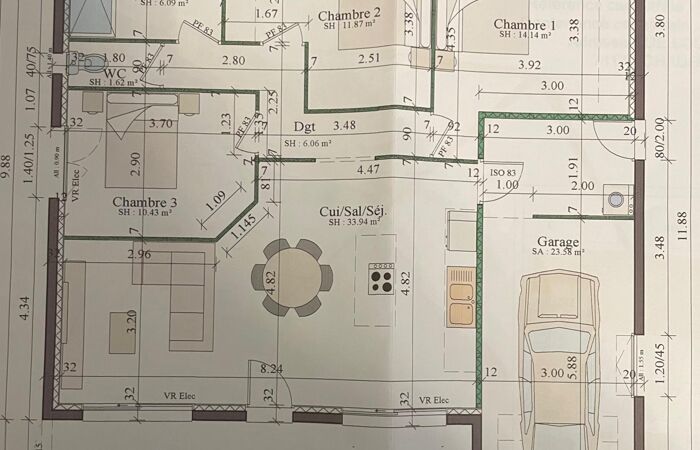 - Nbre. de chambres : 3