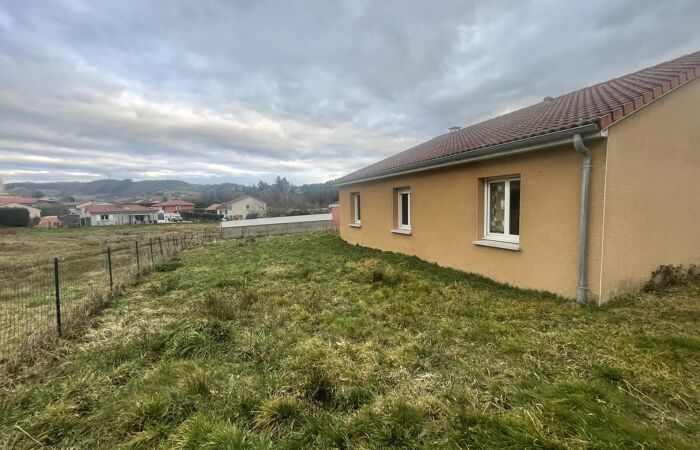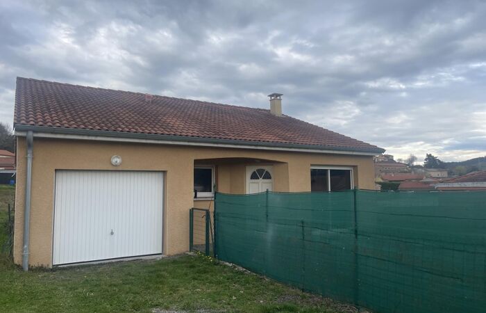 Réf : 05-5185. À 50mn au nord ouest de Lyon, à Amplepuis, à 5 min de la gare SNCF d’ Amplepuis et du centre ville, villa de plain-pied de 2007. Elle comprend une cuisine ouverte sur salon et séjour donnant sur jardin, (possibilité d’installer un poêle à bois), un couloir avec rangement dessert 3 chambres avec placards, une salle d’eau et un wc. Garage. Le tout sur un terrain de 702 m². Classe énergie : D. Plus de renseignements au 06 74 58 29 09.