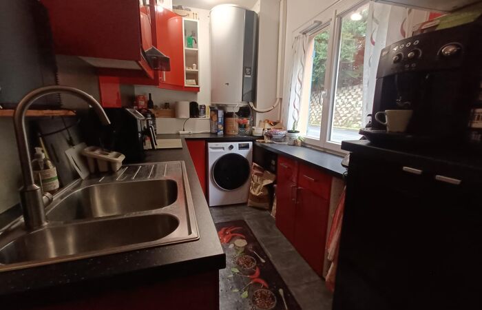 Cet appartement situé au rez-de-chaussée d'une petite copropriété comprend, une pièce de vie avec cuisine équipée, 2 chambres, une salle d'eau-wc, une cave ( pas d'électricité), une place de parking privée. Chauffage électrique, double vitrage pvc récent, assainissement individuel. Classe énergie : D. Idéal premier achat investissement.