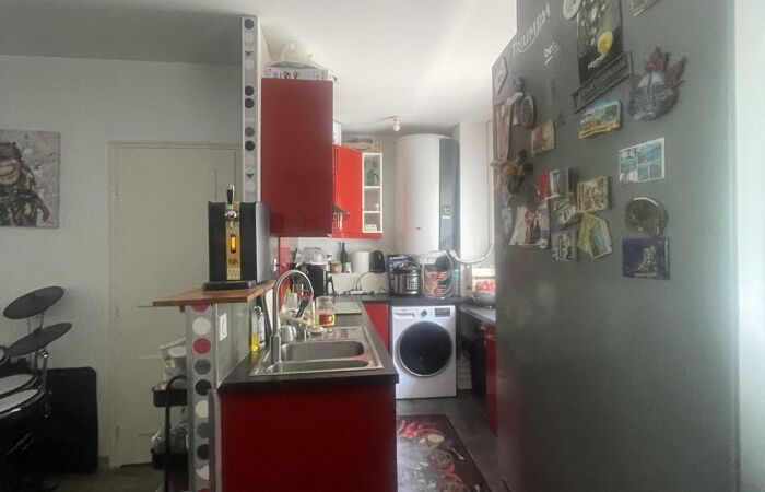 Cet appartement situé au rez-de-chaussée d'une petite copropriété comprend, une pièce de vie avec cuisine équipée, 2 chambres, une salle d'eau-wc,