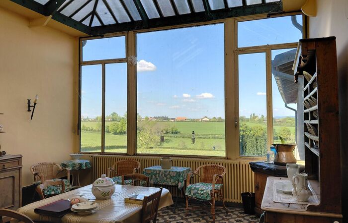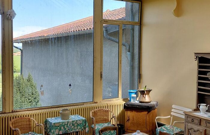Réf 03-5054. A 2 km de CHARLIEU, ancienne propriété vigneronne, composée de 2 maisons sur 4393 m2 de terrain. Maison construite en 1905, comprenant à l'étage : hall d'entrée, bureau, salon (cheminée), couloir, cuisine, chambre (salle d'eau-wc). Une verrière de style art déco (29 m2) est proposée en séjour avec vue sur le bocage, 2 chambres, salle de bain et wc. Au 2ème étage : 3 chambres et bureau. Chauffage central fuel. Au sous sol : ancien cuvage, garage, coin chaufferie, point d'eau (douche, wc) et fruitier. Cave. En face, jardin de 1235 m2. Logement à consommation énergétique excessive Classe E. 2eme maison actuellement louée comprenant : cuisine, salle à manger, salle d'eau et wc. Etage: 2 chambres. Grande dépendance attenante et divers. Toitures récentes et suivies. Plus d'informations au 06-85-29-73-39.