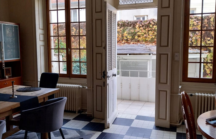 Réf : 03-5215. MARCIGNY centre, à 1H00 de la gare du Creusot, 1h45 de Lyon. À l’abri des regards, vous découvrirez cette maison de Maitre début XVIII siècle, idéalement située au cœur de notre ville sur un terrain de 386 m2 clos de mur. Grace à son exposition Est et Sud, elle bénéficie d'une luminosité tout au long de la journée. D'une surface habitable de 204 m², de beaux volumes (beaux plafonds) avec parquets anciens, boiseries raffinées et cheminées en marbre. Un perron dessert le rez-de-chaussée : salle à manger, salon, bibliothèque (pouvant servir de chambre), cuisine, salle d’eau-wc et wc indépendant. Un escalier en chêne distribue 4 chambres sur parquets dont une suite parentale (douche-baignoire-wc), une salle d'eau et wc séparé. Le grenier est accessible par un escalier en colimaçon ouvrant sur un plateau (100 m2 environ) aménageable et sa vue époustouflante sur la Loire et Marcigny. Au sous-sol : buanderie, grande cave à vin voutée en pierre, chaufferie. Chauffage central gaz de ville (2022). Double vitrage. Classe énergie : D. Plus d'informations au 06-85-29-73-39.
