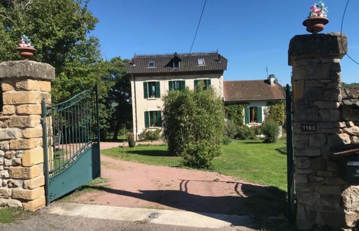 Réf : 08-5136. LA CLAYETTE (71 ) En campagne, belle maison bourgeoise du 19eme siècle de 144 m.² Comprenant : hall d' entrée sol en carreaux de ciment, cuisine équipée, salon avec cheminée, séjour sur parquet et cheminée en marbre, salle de bains, toilette. Un bel escalier en bois dessert à l'étage : 4 chambres avec placards, wc. Double vitrage. La maison est élevée sur cave voutée, atelier, garage, chaufferie ( pompe à chaleur récente). Fosse septique non conforme. Beau terrain piscinable de 2500 m² clos de murs et arboré avec de très beaux arbres, ainsi que différents rosiers . Portail en fer forgé, puits et abri en bois pour voitures. Classe énergie : D. Plus d''informations au 06 74 34 69 95.
