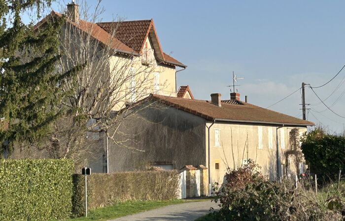 Réf 03-5054. A 2 km de CHARLIEU, ancienne propriété vigneronne, composée de 2 maisons sur 4393 m2 de terrain. Maison construite en 1905, comprenant à l'étage : hall d'entrée, bureau, salon (cheminée), couloir, cuisine, chambre (salle d'eau-wc). Une verrière de style art déco (29 m2) est proposée en séjour avec vue sur le bocage, 2 chambres, salle de bain et wc. Au 2ème étage : 3 chambres et bureau. Chauffage central fuel. Au sous sol : ancien cuvage, garage, coin chaufferie, point d'eau (douche, wc) et fruitier. Cave. En face, jardin de 1235 m2. Logement à consommation énergétique excessive Classe E. 2eme maison actuellement louée comprenant : cuisine, salle à manger, salle d'eau et wc. Etage: 2 chambres. Grande dépendance attenante et divers. Toitures récentes et suivies. Plus d'informations au 06-85-29-73-39.