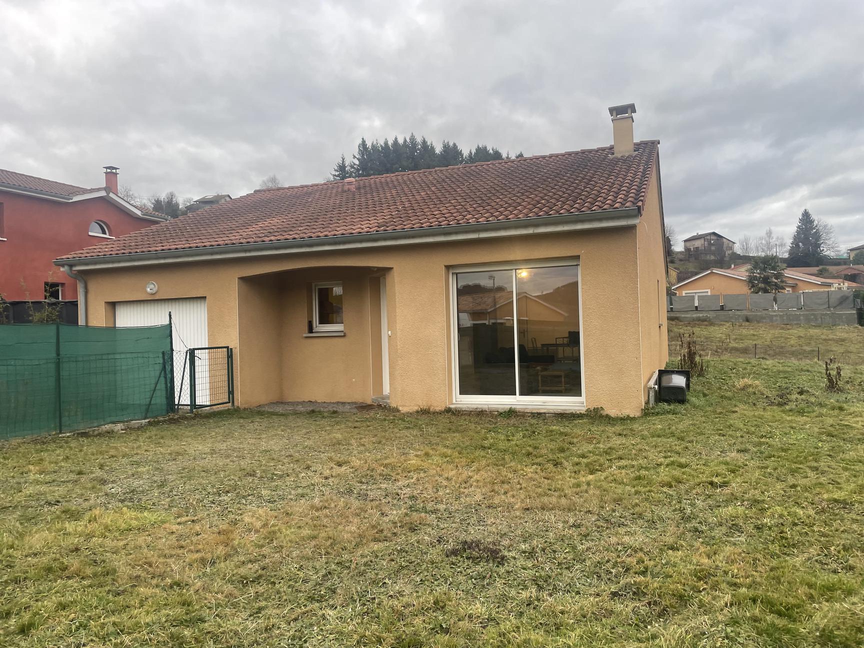 Réf : 05-5185. À 50mn au nord ouest de Lyon, à Amplepuis, à 5 min de la gare SNCF d’ Amplepuis et du centre ville, villa de plain-pied de 2007. Elle comprend une cuisine ouverte sur salon et séjour donnant sur jardin, (possibilité d’installer un poêle à bois), un couloir avec rangement dessert 3 chambres avec placards, une salle d’eau et un wc. Garage. Le tout sur un terrain de 702 m². Classe énergie : D. Plus de renseignements au 06 74 58 29 09.