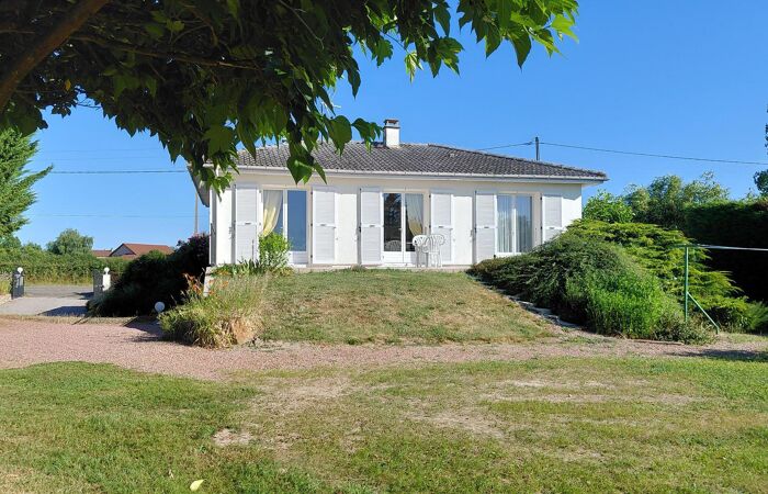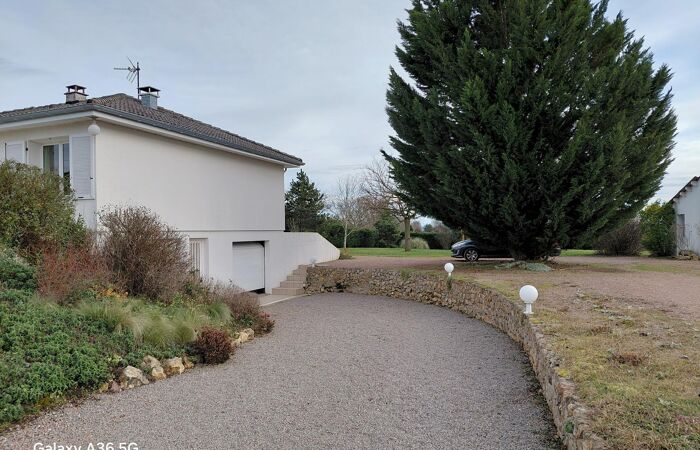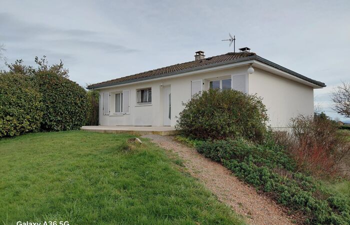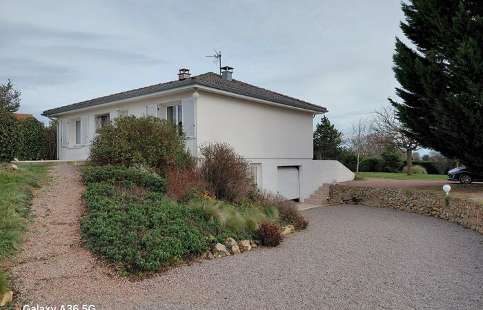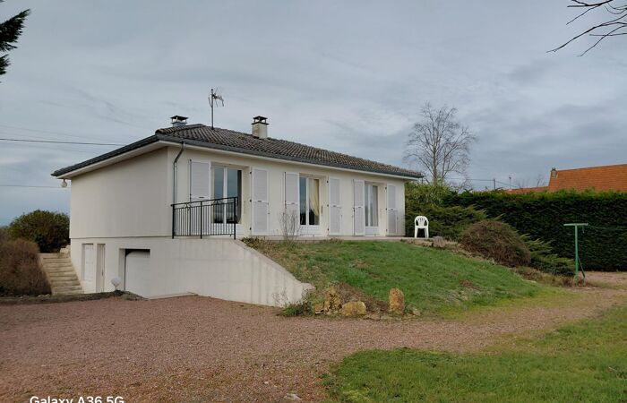 Réf 03-5084. EXCLUSIVITÉ. 8 Minutes de Marcigny, entre LAPALISSE et MARCIGNY, à 1h45 de LYON, maison sur sous-sol enterré, construite en 1976, en très bon état, comprenant : hall d'entrée, cuisine équipée, séjour-salon (cheminée à foyer fermé) avec portes fenêtres donnant sur une terrasse carrelée exposée sud. Espace nuit : couloir avec placards muraux, 2 chambres (placards), salle de bain et wc séparé. Au sous-sol : palier, 2 chambres, wc séparé. Garage 2 places avec coin buanderie. Cave. Une 2ème terrasse exposée nord donne accès à l'entrée principale. Terrain plat, clos et arboré de 2997 m2 avec espace jardin, parking et atelier. Chauffage central fuel. Classe énergie : D. Plus d'informations au 06-85-29-73-39.