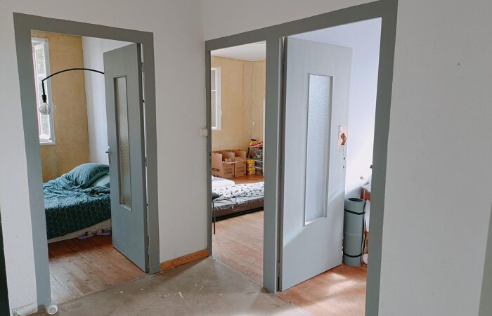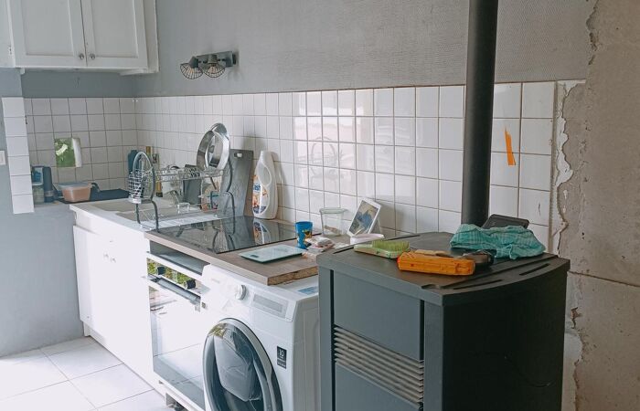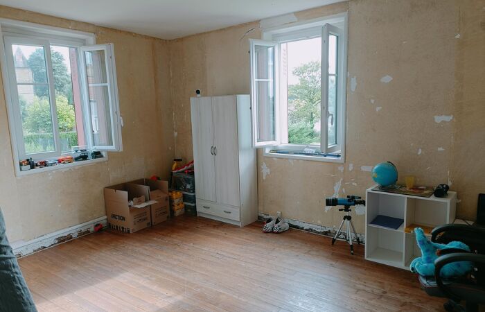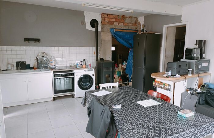 Réf : 04-5123. EXCLUSIVITÉ- 5 mn de Chauffailles, grande maison à finir de rénover, très lumineuse et jolie vue dégagée à l'étage. Actuellement : une cuisine de plus de 20 m² et suite à des travaux une vaste pièce de 50 m² a été créée avec baie vitrée coulissante, volets roulants électriques, accès à une petite cave. A l'étage : 3 grandes chambres, et une autre pièce de 25m² à aménager en une ou deux chambres, salle de bain, wc séparé. Une 2ème cave voutée. Chauffage par poêle à granulés. Isolation des combles récente, fenêtres PVC double vitrage dans la majorité des pièces. Tout à l'égout, puits. Terrain plat. Proche centre village et écoles. Devis travaux disponibles. Logement à consommation énergétique excessive : Classe F. Contactez Karine BAUDOIN au 06 26 79 83 95.