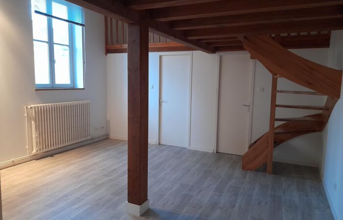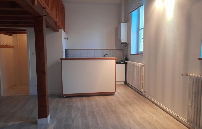 Réf 03-4815. ROANNE, centre ville, dans copropriété de 31 lots, au 1er étage un appartement en duplex (lot 17) loué 595 € : entrée (lot 29) de 89,60 m2 loi carrez comprenant un hall d'entrée, cuisine ouverte sur séjour (23,30 m2) , 2 chambres salle de bain et wc séparé. Mezzanine. Garage (lot 6). Logement à consommation énergétique excessive : Classe E. Chauffage individuel gaz de ville. Plus d'informations au 06-85-29-73-39