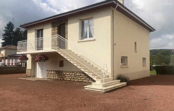 Réf : 01-5135. EXCLUSIVITÉ. SAINT-DENIS DE CABANNE, maison sur sous-sol de 1966, comprenant : garage, chaufferie-buanderie, salle de bain-wc et cave. Etage desservi par un deuxième escalier extérieur ouvrant sur couloir, cuisine équipée, séjour avec accès balcon, 2 chambres avec placards, salle d'eau et wc séparé. Chauffage central au fioul. Double vitrage. Grand garage séparé. Abri de jardin. Cour, jardin et terrain clos de 1043m2. Logement à consommation énergétique excessive : Classe G. Plus de renseignements au 06 79 59 26 74.