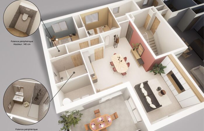 Les logements, d'une superficie comprise entre 79,90m² et 82,39m², offrent des prestations de qualité, avec l'utilisation de matériaux bio sourcés alliant confort, durabilité et performance énergétique.