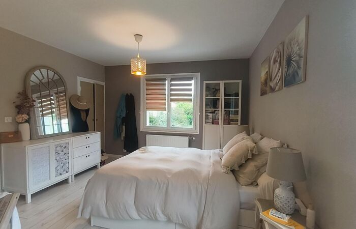 Cette maison comprend de plain-pied : une cuisine ouverte sur le salon-séjour, 3 chambres, une salle-d'eau, wc. Sous-sol complet,. Dépendance et terrain. Chauffage par pompe à chaleur, double vitrage, isolation extérieure, panneaux solaires. Classe énergie : B. Tout à l'égout. A deux pas des commerces, écoles, collèges. A voir ! Plus d'informations contact 06 28 95 83 48.