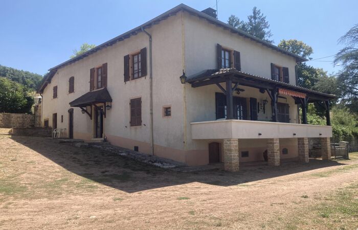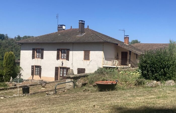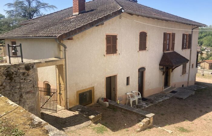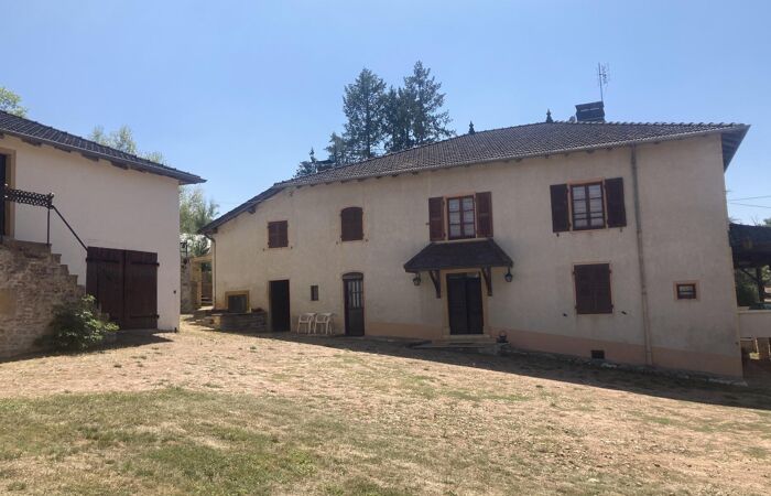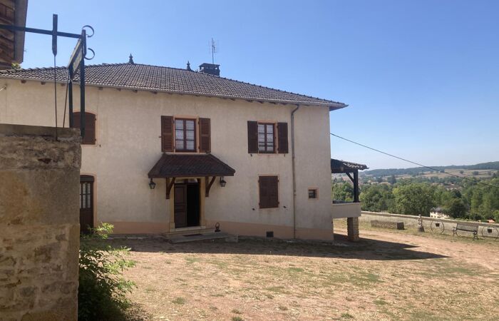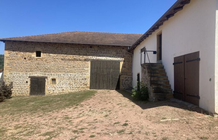 Réf 03-5107. A 7 km de Charlieu, 30mn de Roanne, vue dominante pour cette propriété en pierre composée d'une maison d'habitation et de diverses dépendances sur 6356 m2 de terrain. Maison d'habitation : hall d'entrée, cuisine (cheminée-plafond à la française) bureau-bibliothèque, salon, salle à manger, salle d'eau et wc. A l'étage, un palier en demi-niveau distribue 2 parties : 4 chambres et wc pour la première partie, pièce à vivre avec balcon ouvrant sur un escalier et chambre pouvant être totalement indépendante pour la deuxième partie. Chauffage central fuel. Cour, jardin et parc arboré. Dépendances : garage, étables, grange, fenil et petites annexes. Possibilité d'avoir plus de terrain. Logement à consommation énergétique excessive : Classe F. Plus d'information au 06-85-29-73-39.