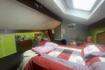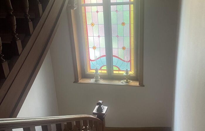 Maison principale sur garage, cave, chaufferie et buanderie. Au rez-de-chaussée : Une entrée qui dessert une salle à manger, une véranda, un salon, une cuisine ouvrant sur terrasse avec espace barbecue et four à pain, une salle de bain, une chambre. Au premier étage : un couloir qui dessert quatre chambres dont une avec salle d’eau, une avec salle de bain et une avec un point d’eau. Un wc sur le palier. Au deuxième étage : une 6ème chambres et un grenier. Chauffage central au bois et granulés. Chaudière installée en 2025.