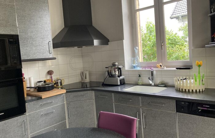 cuisine équipée ouvrant sur véranda, salle à manger avec boiserie et parquet, salon avec verrière de toit nous offrant une belle luminosité. Un bel escalier en bois dessert l'étage et 3 chambres dont une suite parentale avec salle de bain et douche, wc séparé. Au-dessus : deux chambres, salle de jeux, salle d 'eau avec wc. Au sous-sol : cave, buanderie, chauffage au gaz (chaudière Viessmann),cellier.