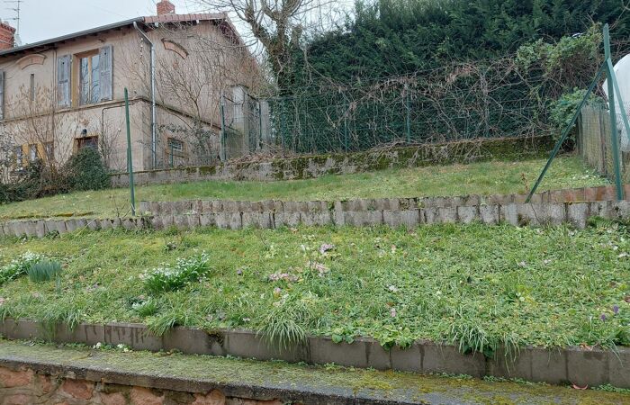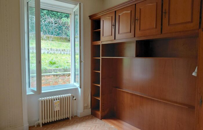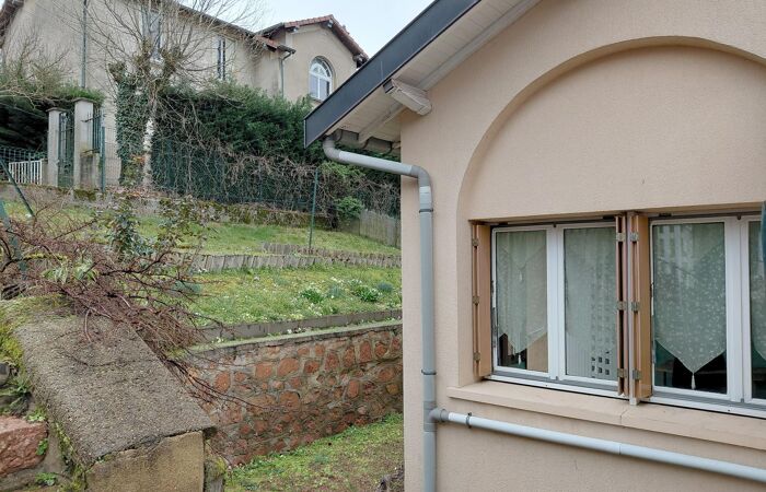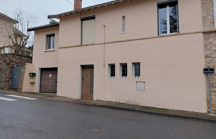 Réf 03-5201. EXCLUSIVITÉ. COURS LA VILLE centre, maison de ville sur sous-sol comprenant à l'étage : cuisine, séjour, salon (pourrait être aménagé en petite chambre), chambre, salle d'eau et wc séparé. Au sous-sol : garage avec porte électrique, chaufferie et cave. Toiture en bon état. Chauffage central au gaz de ville. Double vitrage. Volets roulants électriques et volets bois. Terrain clos. A proximité des écoles et des commerces. Classe énergie : F. Plus d'informations au 06-85-29-73-39.