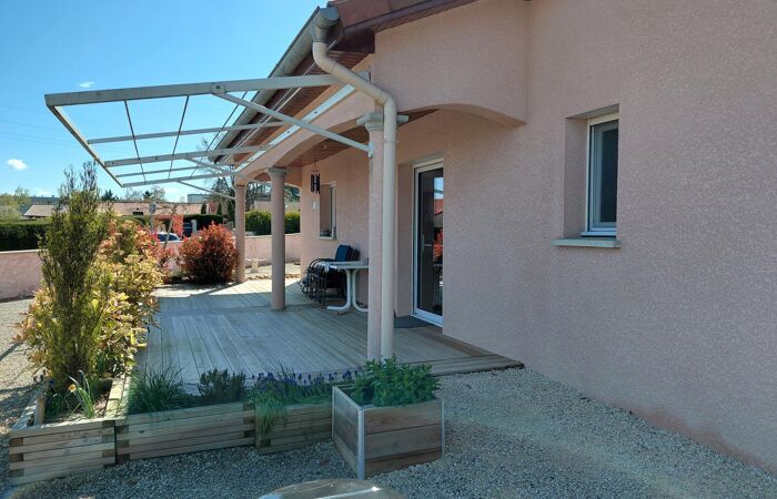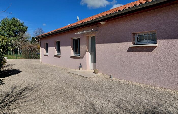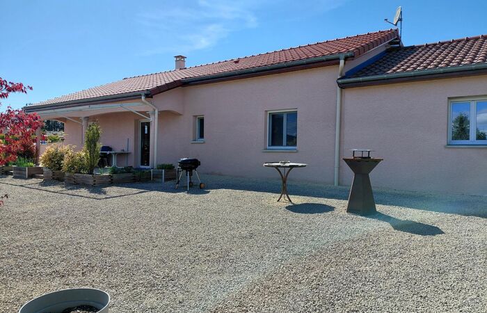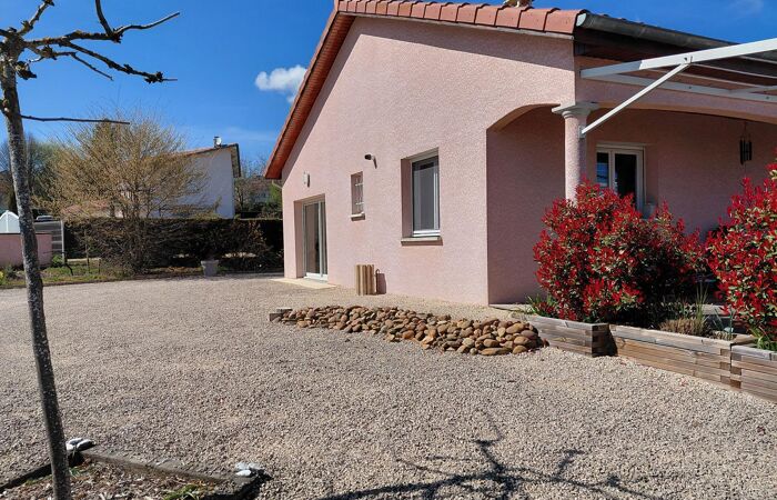 Réf 03-5154. EXCLUSIVITÉ. RARE . CHARLIEU, maison de plain-pied de 2005 en excellent état, à seulement 1 km du centre-ville. Elle se compose d’une cuisine équipée ouverte sur un séjour-salon lumineux avec porte-fenêtre donnant accès à une terrasse. L’espace nuit comprend 4 chambres, une salle de bain avec douche à l’italienne et meuble double vasques, un wc séparé et une buanderie. Chauffage central au gaz de ville. La maison dispose de double vitrage et de volets roulants électriques centralisés. Un garage de 30 m² avec porte automatique, point d’eau et wc complète l'ensemble. À l’extérieur, vous profiterez d’un terrain clos de 1 029 m² avec portail électrique et interphone. Classe énergie : C. Plus d'informations au 06-85-29-73-39.