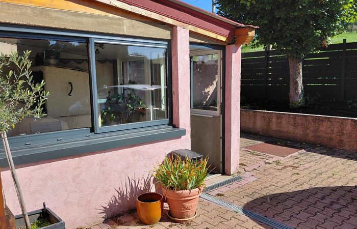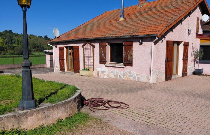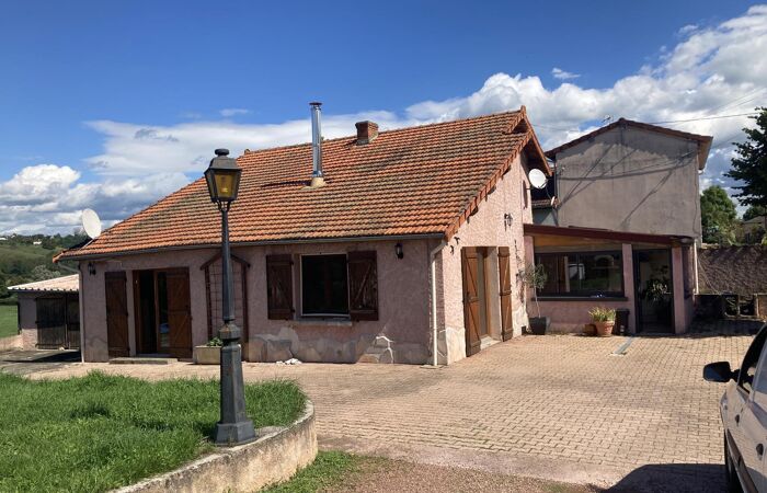 Réf 03-5122. EXCLUSIVITÉ. Près de Charlieu, à POUILLY SOUS CHARLIEU (42), maison d'habitation de 104 m2 sur 893 m2 de terrain clos comprenant : hall d'entrée, cuisine aménagée, salon (cheminée à foyer fermé), séjour, dégagement, salle d'eau-wc. A l'étage : 2 chambres. Double vitrage sur menuiseries bois. Chauffage central fuel et cheminée. Véranda. Garage séparé. Local. Abri voiture. Cour et terrain clos avec portail électrique et interphone. Puits. Assainissement individuel non conforme. Logement à consommation énergétique excessive : Classe E Plus d'informations au 06-85-29-73-39.