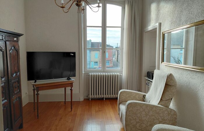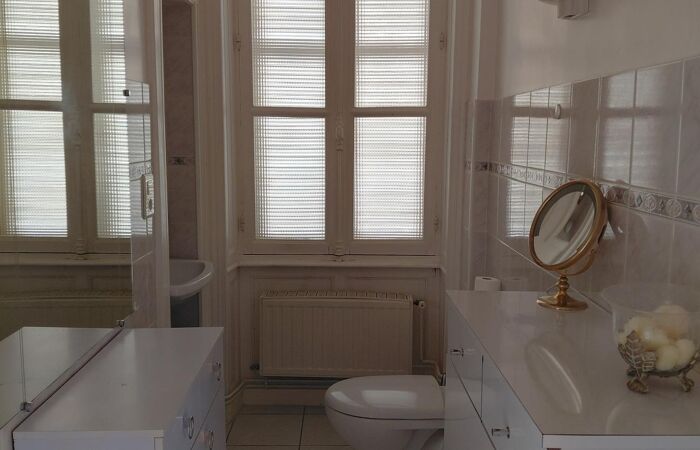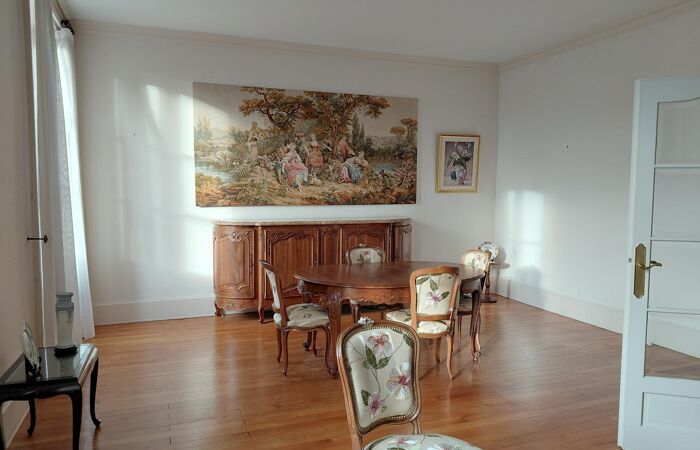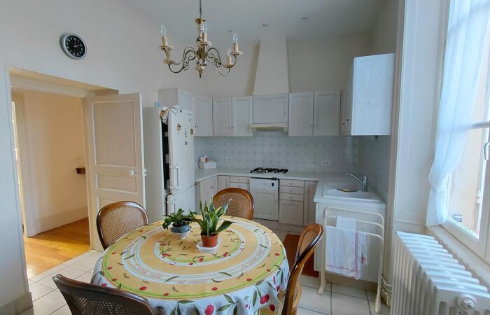 Réf 03-5191 MARCIGNY CENTRE, dans un immeuble de caractère, au 1er étage d'un e petite copropriété, sans ascenseur, appartement de 116m2 en bon état, comprenant : entrée, cuisine équipée, séjour-salon (32m2), 2 chambres dont une avec placard mural, salle d'eau (douche à l'italienne-meuble vasque-placard mural) et wc séparé. Buanderie. Chauffage central individuel au gaz de ville (chaudière neuve) et double vitrage sur 2 pièces. Cet appartement est très lumineux, parquet chêne. Grenier comprenant : chaufferie et une pièce sur tomettes. Garage avec porte automatique et cave. Parking privé. A proximité des commerces et écoles. A visiter. Classe énergie E. Plus d'informations au 06-85-29-73-39