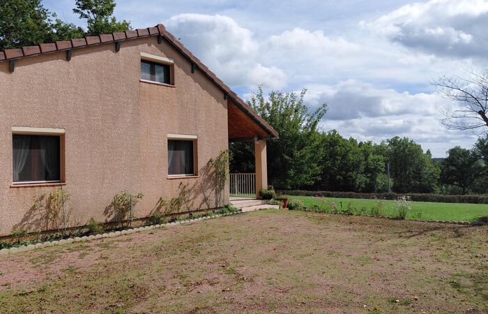 Réf 03-5100. Près de Marcigny (71), à 1h45 de Lyon, 1h de Vichy, 35mn de Roanne, sur 10 914 m2 de terrain plat, maison construite en 1990, en très bon état composée d'une terrasse carrelée et couverte sur 12 m2, d'un hall d'entrée, d'une cuisine équipée ouverte sur le séjour, de 2 chambres, d'une salle d'eau et d'un wc . L'étage est desservi par un escalier en colimaçon ouvrant sur un palier, 2 grandes chambres sous rampants et un wc (sanibroyeur). Buanderie, garage. Double vitrage. Volets roulants électriques. Chauffage bois par cheminée avec insert et PAC air/air pour l'étage. Panneaux solaires, (rapport : environ 1200€ par an). Assainissement individuel. Tranquillité assurée. Classe énergie : D. Plus d'informations au 06-85-29-73-39.
