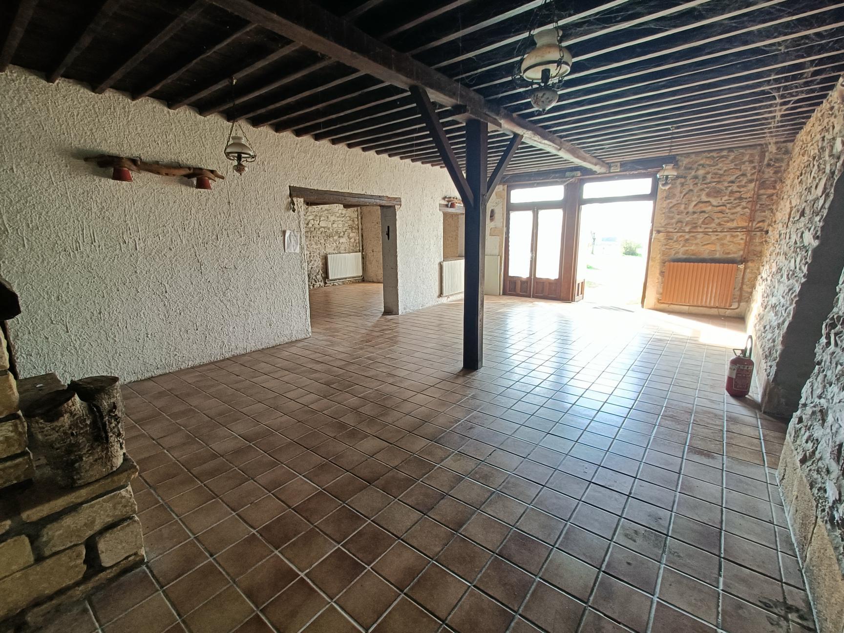 L'atout de cette maison c'est l'ancienne grange transformée au RDC en deux grandes salles communicantes (mur non porteur) d'une superficie de 80 m² au total avec murs en pierres apparentes, grande cheminée ouverte, poutres. Possibilité d'aménager la même surface au-dessus. Une ancienne écurie en pierres apparentes d'environ 60 m² au sol servira d'atelier, de rangement. Un terrain plat autour d'environ 2400 m². Prévoir un budget travaux. Chauffage central au fioul, Classe énergie : E. Fosse septique à refaire. Double vitrage récent. Contacter Karine BAUDOIN au 06 26 79 83 95.