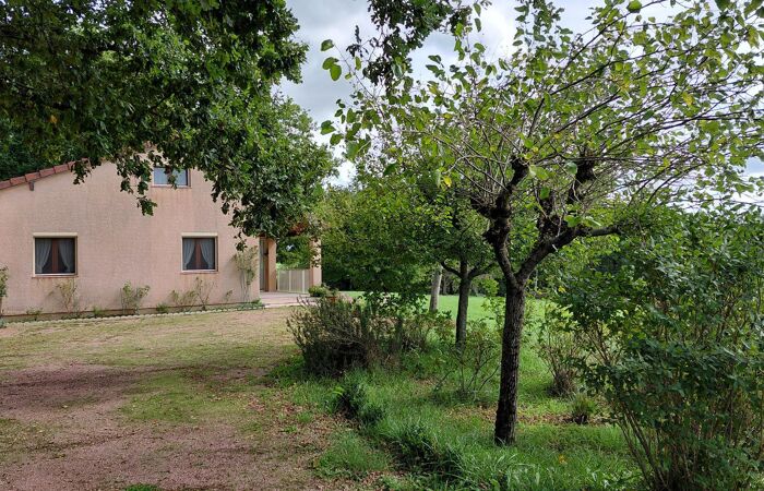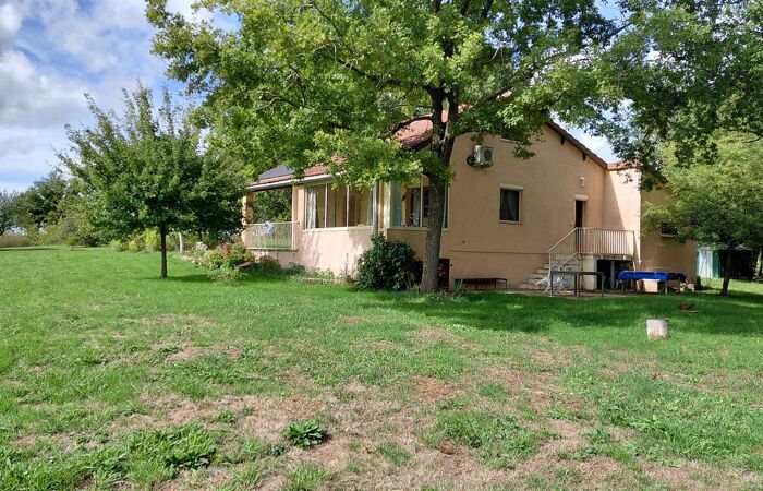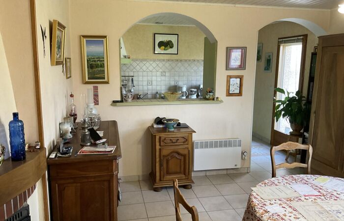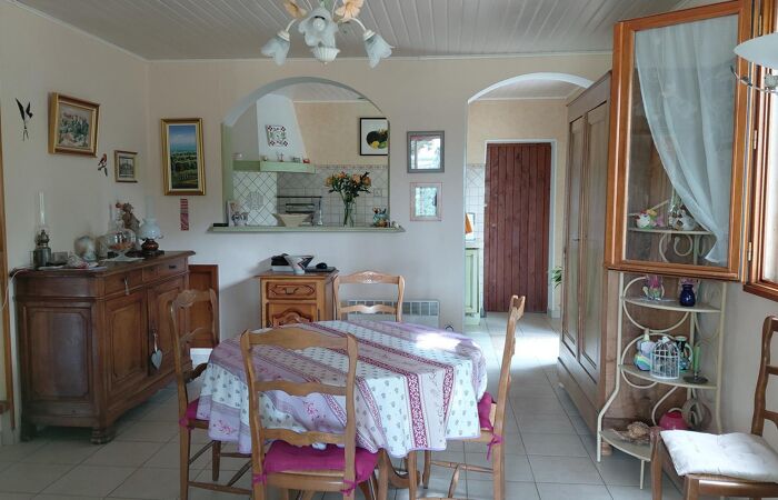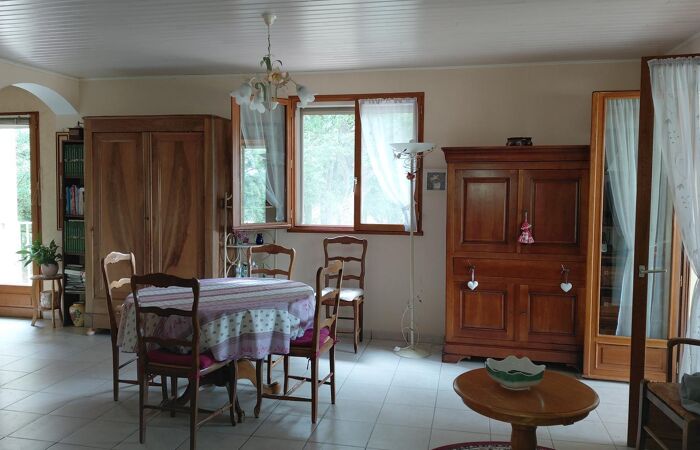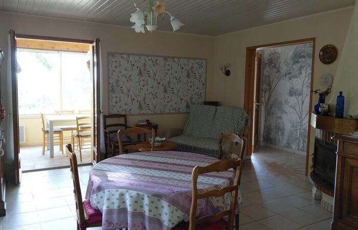 Réf 03-5100. Près de Marcigny (71), à 1h45 de Lyon, 1h de Vichy, 35mn de Roanne, sur 10 914 m2 de terrain plat, maison construite en 1990, en très bon état composée d'une terrasse carrelée et couverte sur 12 m2, d'un hall d'entrée, d'une cuisine équipée ouverte sur le séjour, de 2 chambres, d'une salle d'eau et d'un wc . L'étage est desservi par un escalier en colimaçon ouvrant sur un palier, 2 grandes chambres sous rampants et un wc (sanibroyeur). Buanderie, garage. Double vitrage. Volets roulants électriques. Chauffage bois par cheminée avec insert et PAC air/air pour l'étage. Panneaux solaires, (rapport : environ 1200€ par an). Assainissement individuel. Tranquillité assurée. Classe énergie : D. Plus d'informations au 06-85-29-73-39.