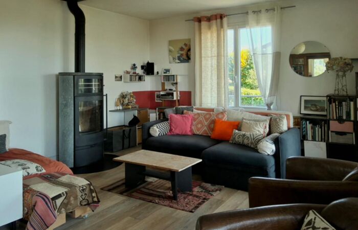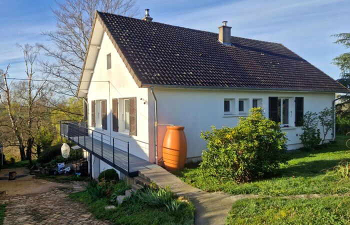 Réf 03-5217. SECTEUR MARCIGNY, à 1 km du centre ville, dans un environnement campagnard avec une vue époustouflante, maison sur sous-sol enterré de 128 m2 comprenant : hall d’entrée, cuisine aménagée, séjour-salon équipé d’un poêle à bois en pierres réfractaires et portes-fenêtres ouvrant sur une terrasse couverte. Espace nuit comprenant : un couloir desservant deux chambres, une salle d’eau et un wc séparé. Au sous-sol : une chambre avec placard, une buanderie, une chaufferie (chaudière à pellets), ainsi qu’un cellier et une cave. Garage double et bûcher. Travaux réalisés en 2021 : installation de menuiseries PVC en double vitrage, rénovation de l’électricité, mise en place de la chaudière à pellets et du poêle à bois, réfection de l’assainissement individuel. Aménagement d’une passerelle avec accès à l’entrée principale et installation d’une porte de garage automatisée. Jardin arboré avec point d'eau, arbres, verger. Classe énergie E. Plus d'informations au 06-85-29-73-39.