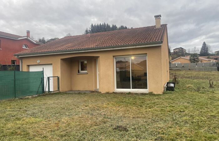 Réf : 05-5185. À 50mn au nord ouest de Lyon, à Amplepuis, à 5 min de la gare SNCF d’ Amplepuis et du centre ville, villa de plain-pied de 2007. Elle comprend une cuisine ouverte sur salon et séjour donnant sur jardin, (possibilité d’installer un poêle à bois), un couloir avec rangement dessert 3 chambres avec placards, une salle d’eau et un wc. Garage. Le tout sur un terrain de 702 m². Classe énergie : D. Plus de renseignements au 06 74 58 29 09.