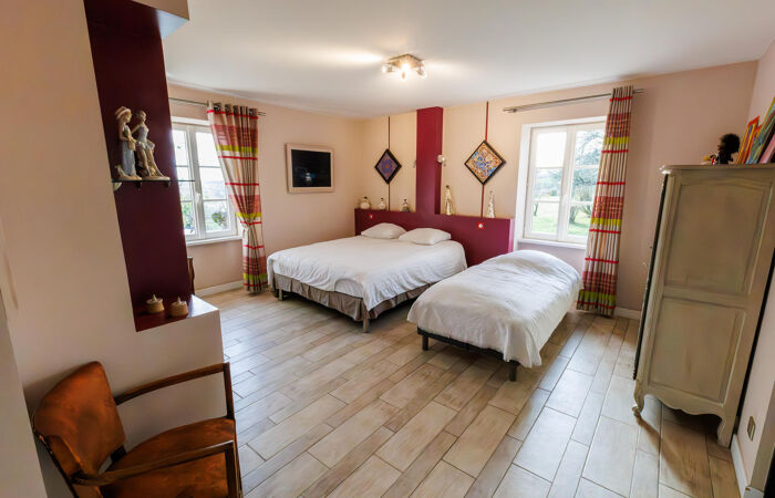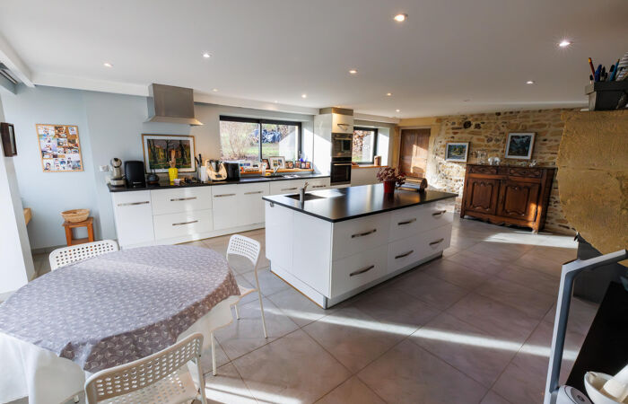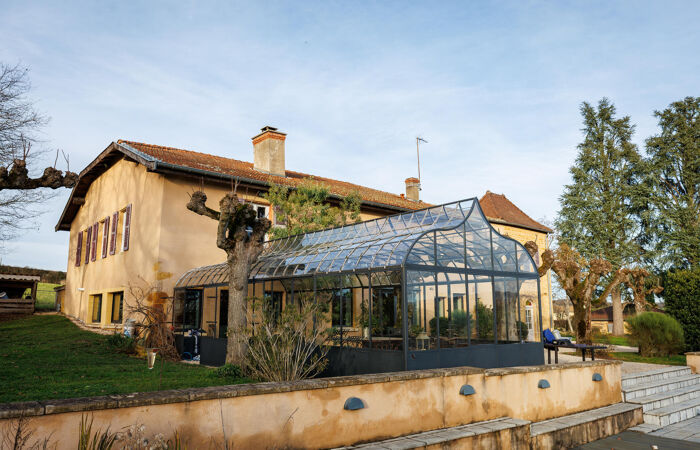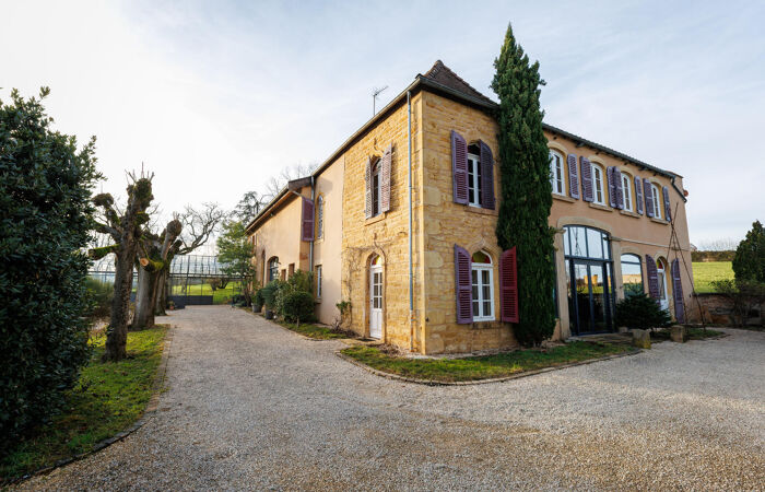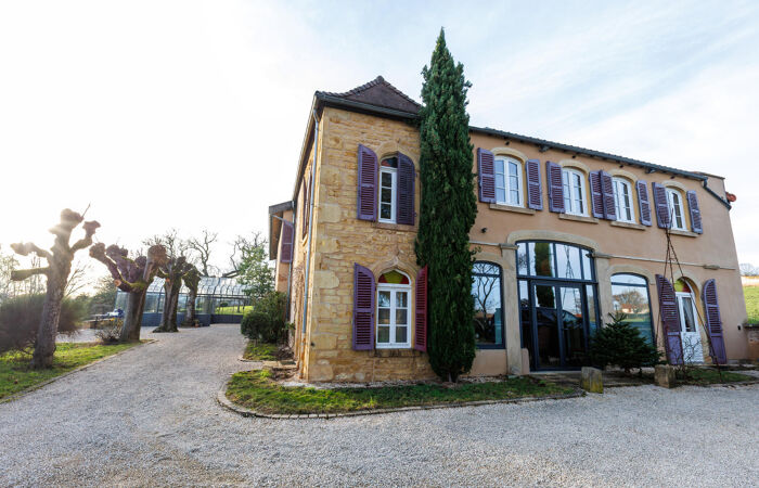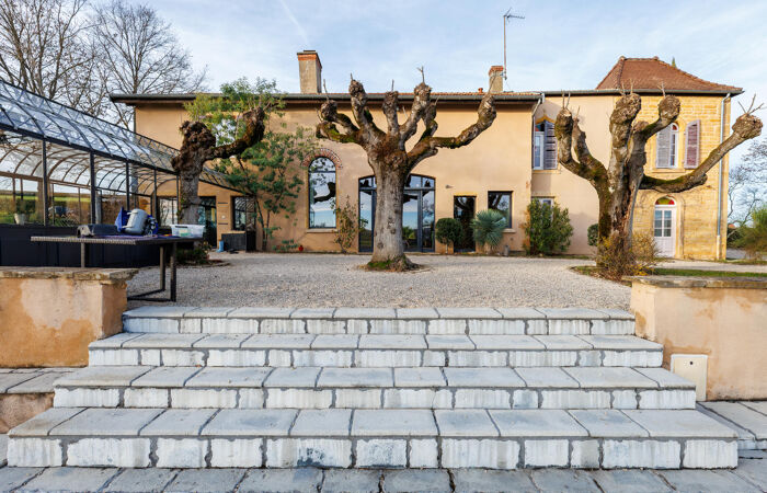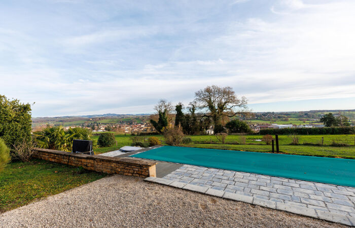 Réf : 01-5094. CHARLIEU (42). EXCLUSIVITÉ. Propriété d'exception à Charlieu (42) – Ancien cuvage rénové. Au bout d’un chemin privé, dans un environnement champêtre, découvrez ce bien rare : un ancien cuvage datant de la fin du XIXe siècle, entièrement restauré avec soin, offrant une vue panoramique dominante sur la cité médiévale de CHARLIEU, sans aucune nuisance (aucune route passante à moins de 300 m). Caractéristiques principales : Terrain de 27 000 m² environ dont 7 000 m² en parc et 20 000 m² en fermage. L'habitation : volumes généreux, avec de vastes pièces de vie, 363 m² au total, très lumineuses, orientation Sud-Ouest. Piscine chauffée : 15 m x 4 m, avec jacuzzi, pool-house, local technique et cuisine d’été. Garage indépendant : 3 places (env. 60 m² au sol). Terrasses, dont une couverte par une verrière. Rez-de-chaussée : Hall d'entrée Imposant, salon chaleureux avec poêle à bois, chambre indépendante avec salle d’eau, wc, accès direct terrasses, grande salle à manger lumineuse (57 m²) avec belle hauteur sous plafond, baie vitrée sur terrasse et piscine, cuisine équipée avec cheminée traversante, ouvrant sur terrasse couverte, wc avec lavabo, Chaufferie-buanderie, cave. À l’étage : 1ère chambre avec salle de bain et wc, accessible depuis le hall, salon de lecture, grande chambre parentale (40 m²) avec dressing, placards, salle de bain et wc, 2 autres chambres (17 m² et 24 m²) avec salle de bain commune et wc. Bibliothèque, salon télé. Grenier.