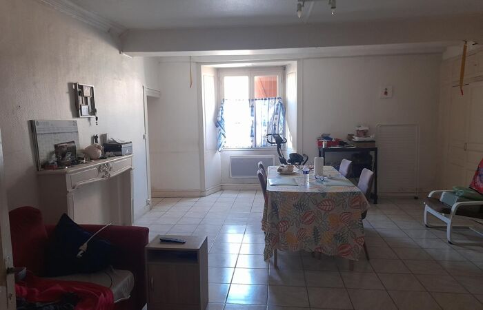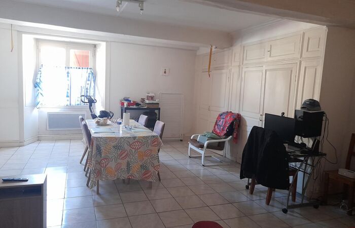 Réf 03-5021. EXCLUSIVITE. LA PACAUDIERE (42) centre, appartement en rez-de-chaussée de 87,50 m2 (loi carrez) à rafraichir comprenant : couloir, cuisine, séjour-salon (32m2) 2 chambres, salle d'eau et wc séparé. Chauffage électrique par convecteurs. Double vitrage sur menuiseries bois. Petite copropriété
