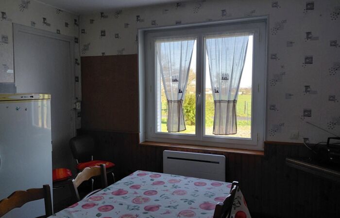 Maison d'habitation de 100 m2 habitable environ, comprenant : hall d'entrée, cuisine, buanderie, salle à manger, dégagement, salle d'eau (douche à l'italienne) meuble vasque et wc séparé. A l'étage : palier, 3 chambres sur parquet dont 2 avec placards muraux, une pièce (possibilité salle d'eau-wc). Grenier. Chauffage électrique par convecteurs. Possibilité poêle à bois. Double vitrage PVC au rez-de-chaussée. Gros-oeuvre en bon état. Assainissement individuel non conforme. Dépendances : abri voitures, grange, étable. Classe énergie F. Plus d'informations au 06-85-29-73-39.