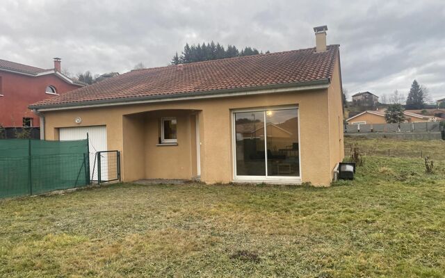Réf : 05-5185. À 50mn au nord ouest de Lyon, à Amplepuis, à 5 min de la gare SNCF d’ Amplepuis et du centre ville, villa de plain-pied de 2007. Elle comprend une cuisine ouverte sur salon et séjour donnant sur jardin, (possibilité d’installer un poêle à bois), un couloir avec...