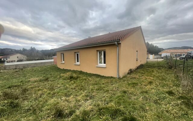 Réf : 05-5185. À 50mn au nord ouest de Lyon, à Amplepuis, à 5 min de la gare SNCF d’ Amplepuis et du centre ville, villa de plain-pied de 2007. Elle comprend une cuisine ouverte sur salon et séjour donnant sur jardin, (possibilité d’installer un poêle à bois), un couloir avec...